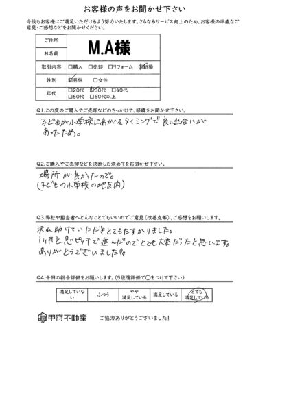 Q1.この度のご購入やご売却等のきっかけや、経緯をお聞かせ下さい。